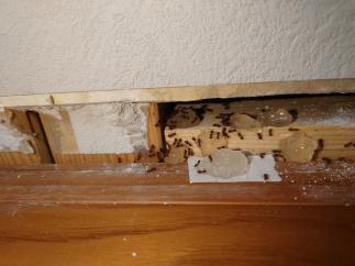 Case2|黒アリが壁の中に巣を作っていた「アリが出る」と言われたお宅を訪問すると、 特殊なカメラで調査した結果、 ️対応内容:壁の一部施工・薬剤注入・根元除去・再封鎖